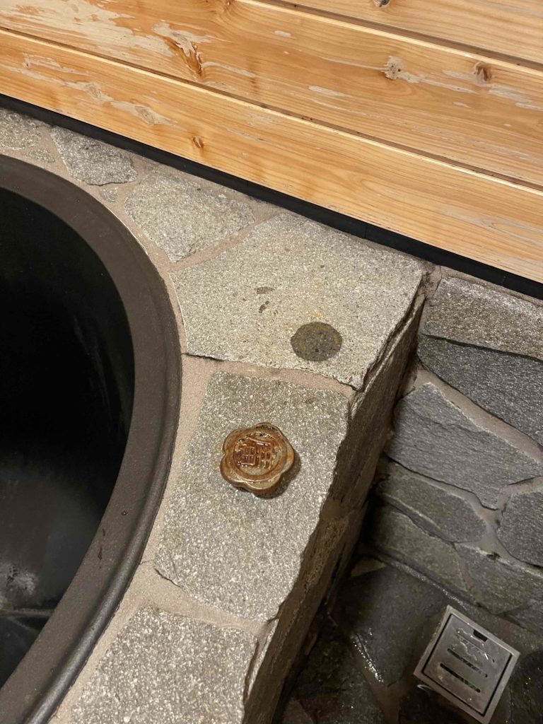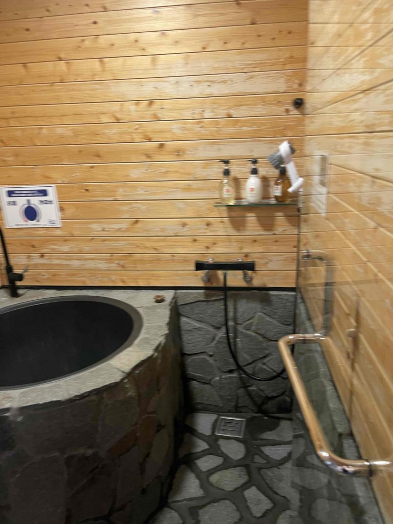 本格的な和風の風呂って感じです。銅?と石が素材なのかわかりませんが、質感が高級でリッチに入浴できます。
