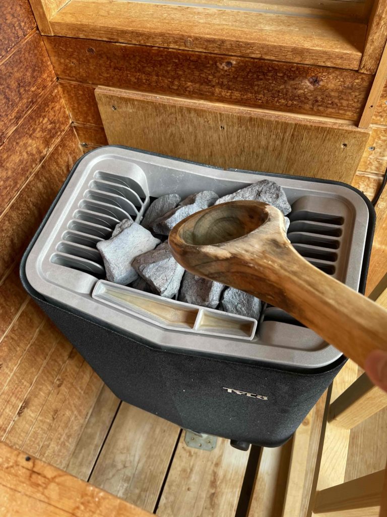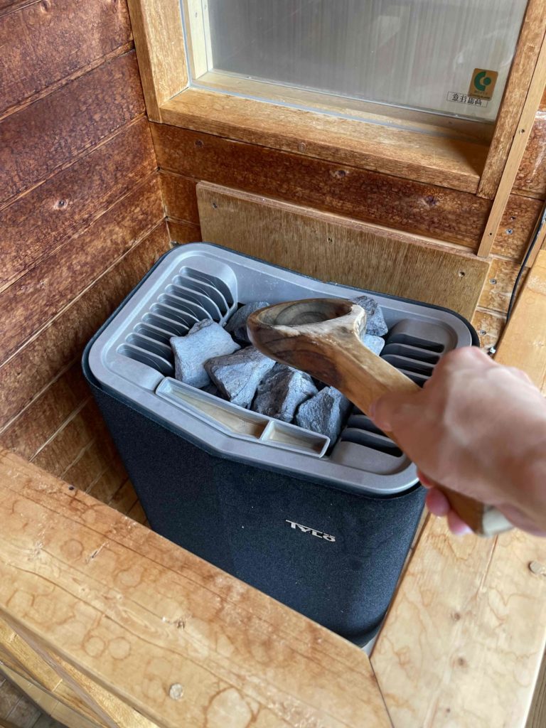 自分で初ロウリュしてみました。いい感じに暑くなりました。
